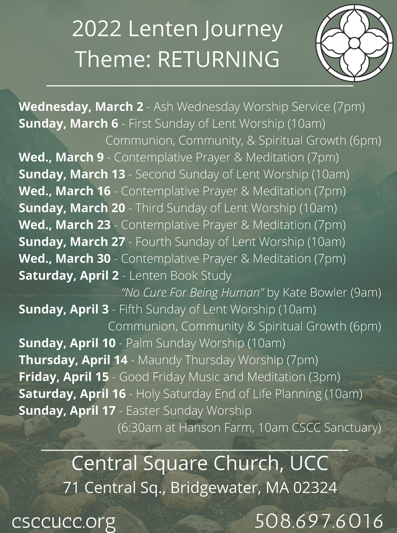 Facebook pages: facebook.com/csccuccbridgewaterma (main page), facebook.com/groups/801550253194149 (youth page)