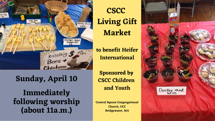 Parents, if you would like to help during these classes please come and join us. If your child has never been to Sunday School he/she may feel more comfortable with your presence. The culminating activity is the Living Gift Market and will occur on Sunday, April 10. We cannot wait to see all our young friends come together in community once again!