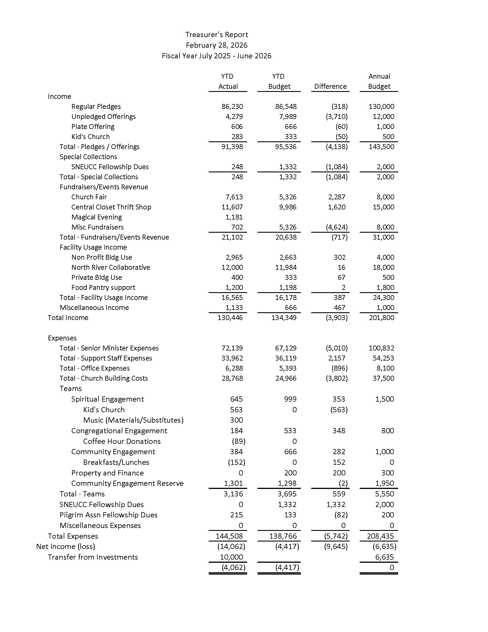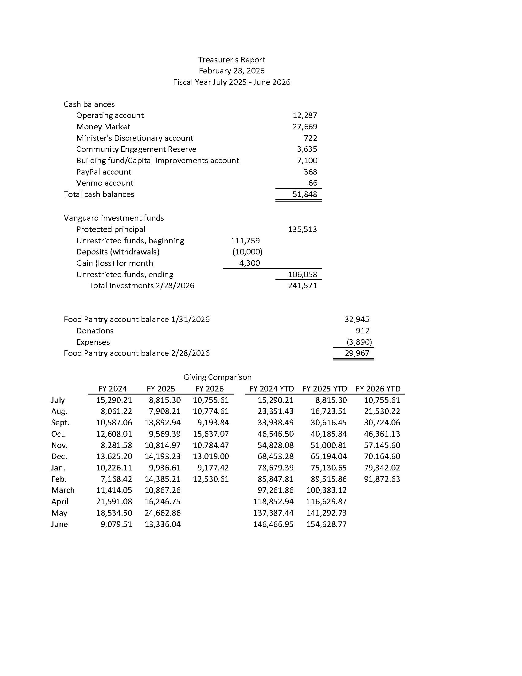 Treasurer’s report