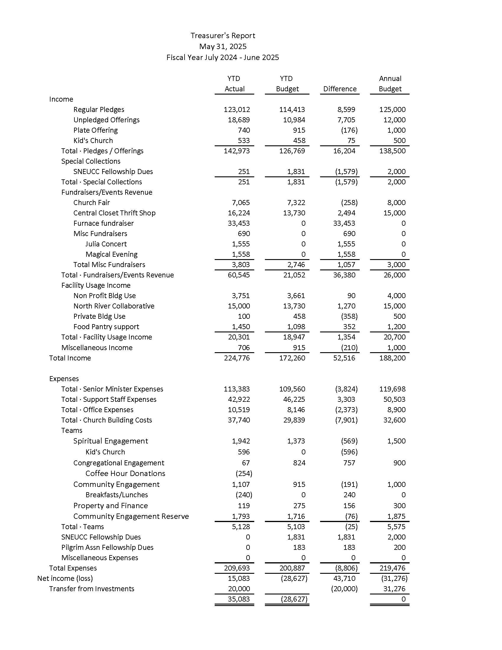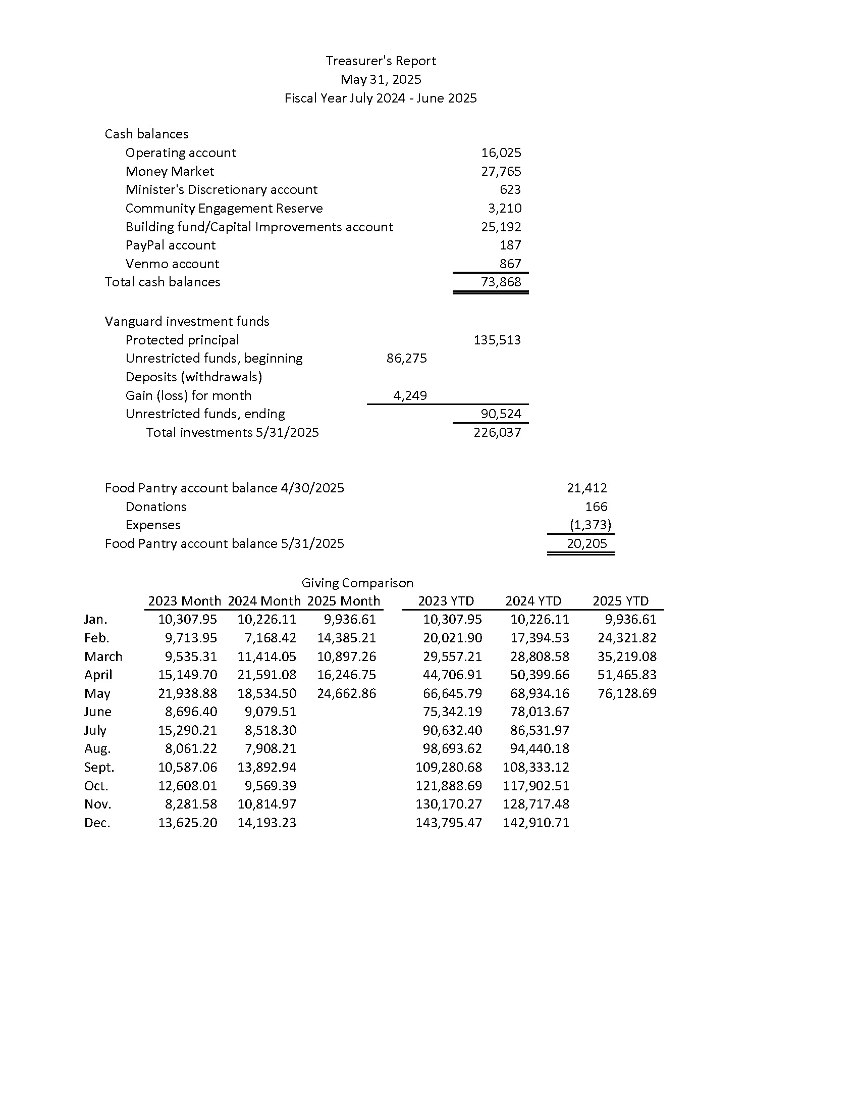 • Reverend Andrew coming on the 29th to help smooth transition.