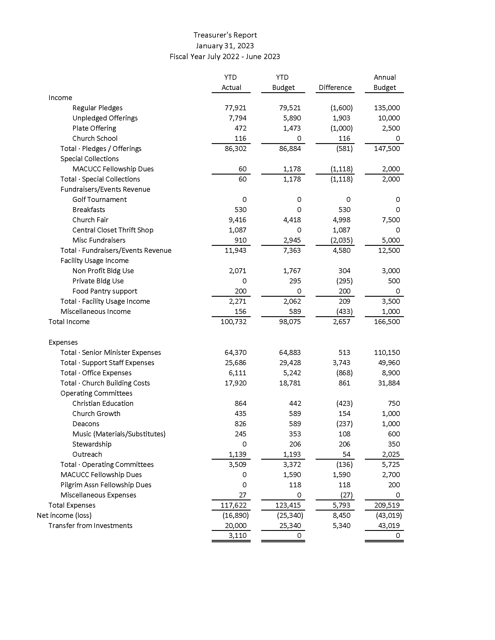 Cabinet members in attendance: Rev. Beth Stotts, Pastor; Denise Molinari, Vice Moderator; David Sheibley, Treasurer; Diane Sheibley, Clerk; Ed Buckland and Gordon Brailsford, Board of Trustees; Bill O’Neil, Board of Christian Outreach; Kathleen Mosher, Board of Stewardship; Terry Reynolds, Board of Christian Education and History & Memorials Committee; Ellen Crawford, Music Committee; Jane O’Connell, Women’s Guild & Fellowship