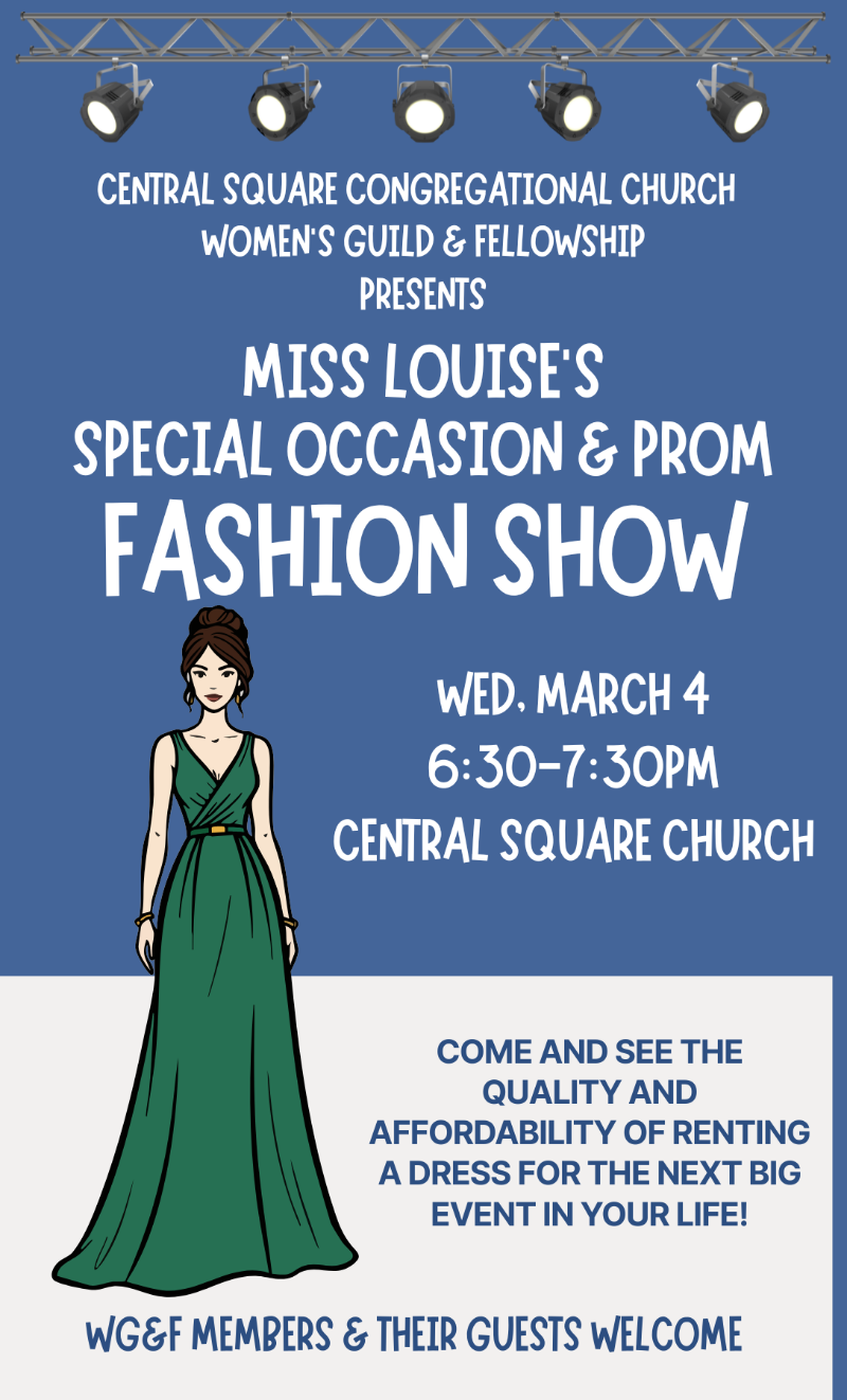 Have a formal occasion this year coming up? Join the Women’s Guild and Fellowship for our next meeting: a Formalwear Fashion Show with our members as models!