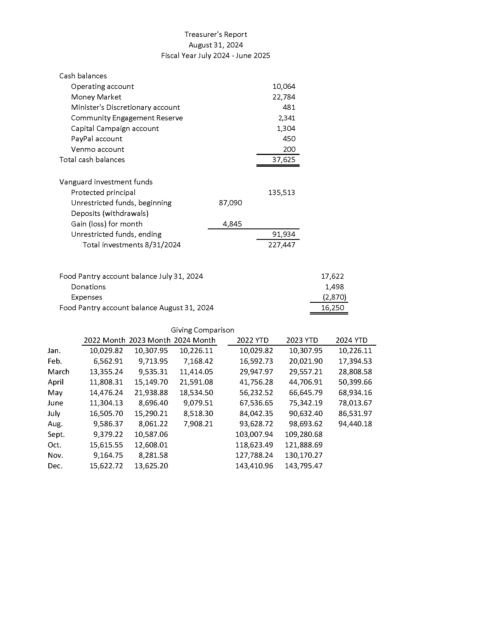 Treasurer’s Report – Rev Beth reviewed Dave’s report